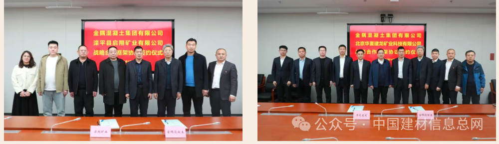 为进一步加强产业链上下游协同,深化资源整合与优势互补,秉承“长期合作、优先保供;质量稳定、持续创新;定量采购、质价最优;共担风险、互利共赢”的合作原则,近日,金隅混凝土集团分别与滦平县启翔矿业有限公司和北京华夏建龙矿业科技有限公司签署了战略合作框架协议。